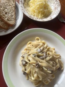 ということで今回は、**料理があまり得意じゃない娘が主役**、私はなるべく手を出さずに**横から小声でアドバイス**するスタイルで、**牛肉入りのちょっと贅沢カルボナーラ**を作りました。
