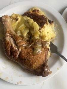 チキンの太ももはしっかり焼かれているのに、お肉の中はジューシー。この焼き加減、やっぱりプロだなぁ…と感じました。シンプルだからこそ、素材の良さと技術が光るんですね。
